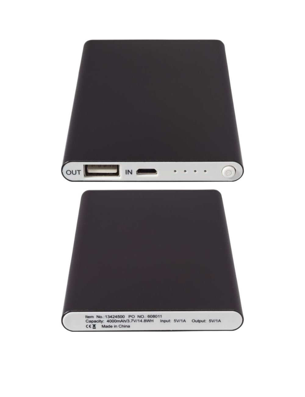 Pep 4000 mAh power bank Περιγραφή: Power Bank 4000 mAh Υλικό: Αλουμίνιο Λεπτομέρειες: Χωρητικότητα μπαταρίας 4000 mAh Καλώδιο USB-A to Type-C Βάρος 122 γρ. Διάσταση αντικειμένου: 10,9 x 6,80 εκ Διάσταση χάραξης: 9,5 x 5,0 εκ Κωδικός προϊόντος: 1342450 Κατηγορία: Power Banks Μάρκα: PF Σχετικά προϊόντα Quick View Quick View Power BanksJuice 4000 mAh Type-C recycled aluminium wireless power bank Διαβάστε περισσότερα Quick View Quick View Power BanksVolt 2200 mAh power bank Διαβάστε περισσότερα Quick View Quick View Power Banks, ΗχείαEcofiber bamboo Bluetooth® speaker and wireless charging pad Διαβάστε περισσότερα Quick View Quick View Power BanksAcamar 20.000 mAh 70W recycled aluminium laptop power bank Διαβάστε περισσότερα Quick View Quick View Power BanksXtorm XG205 Go2 12W 5.000 mAh fast charge power bank Διαβάστε περισσότερα Quick View Quick View Power BanksTulda 5000 mAh bamboo power bank Διαβάστε περισσότερα